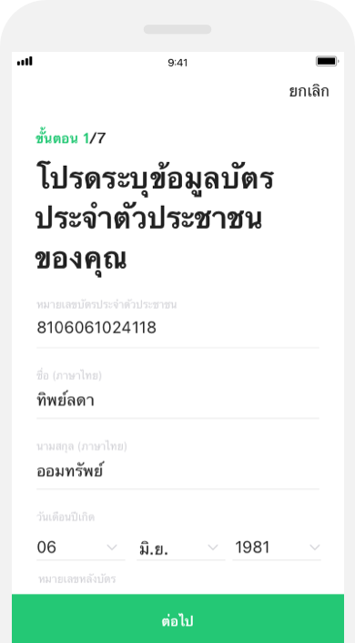 ขั้นตอนที่ 7 ยืนยันตัวตนด้วยการถ่ายภาพใบหน้า