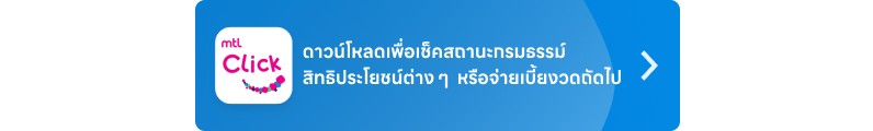 หรือ ท่านสามารถเรียนรู้ และศึกษาข้อมูลเพิ่มเติมเกี่ยวกับ MTL Click ได้ที่ https://www.muangthai.co.th/th/mtlclick